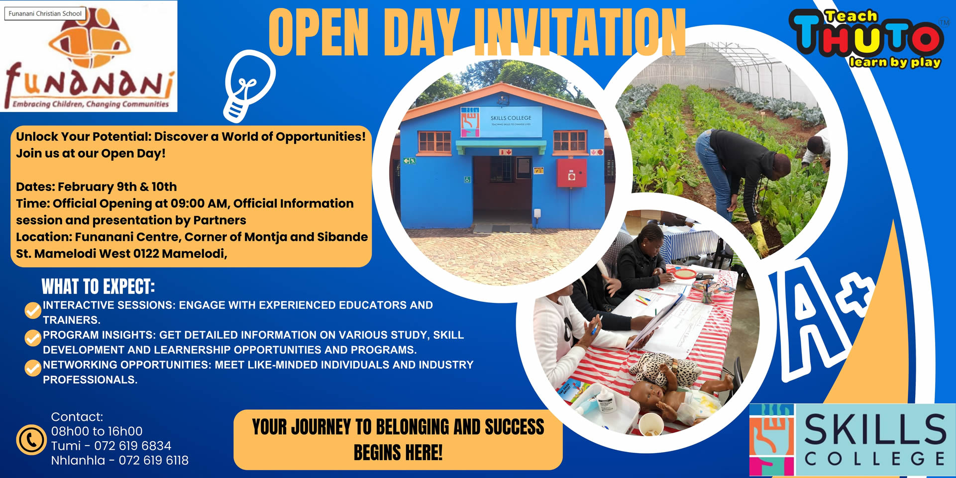 In order to maximise the opportunities for growth for the youth in our communities, Skills College has partnered with the Funanani Christian School and Teach Thuto.